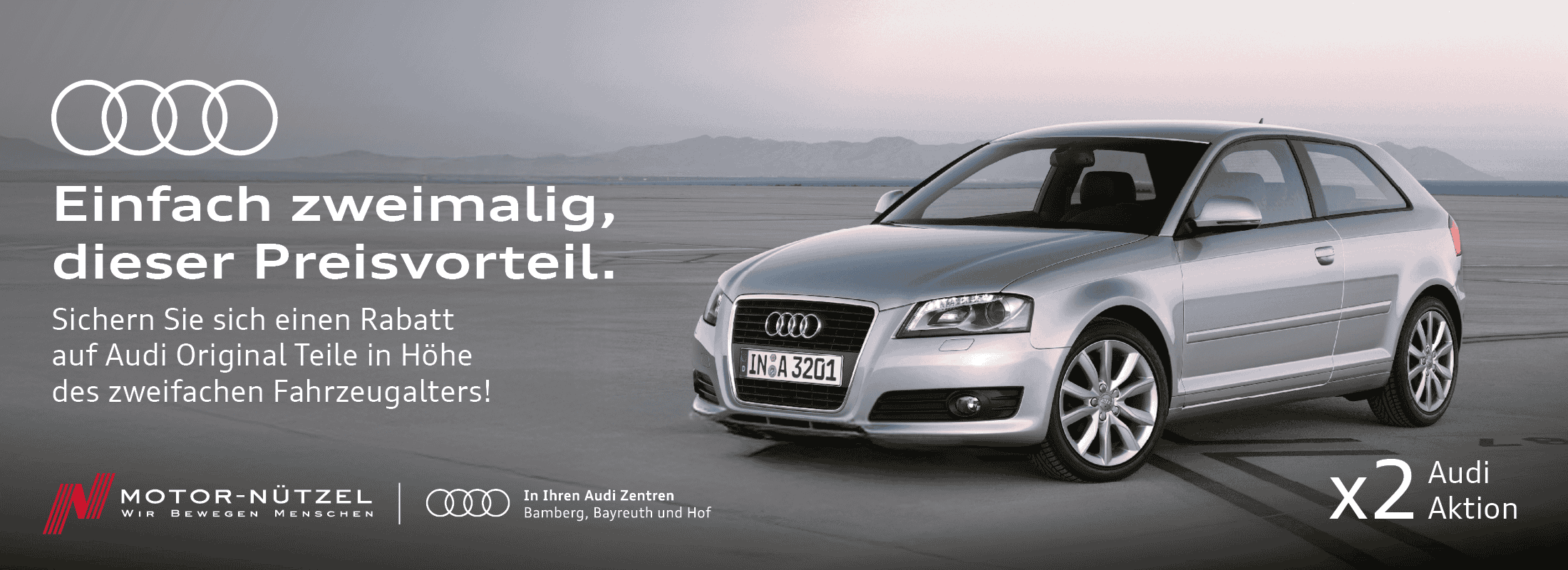 Ab sofort startet bei Motor-Nützel die große x2 Endkundenrabattaktion 2026. Sichern Sie sich exklusive Preisvorteile auf Audi Original Teile – speziell für Fahrzeuge, die älter als 4 Jahre sind. Aktion gültig bis 30.06.2026.